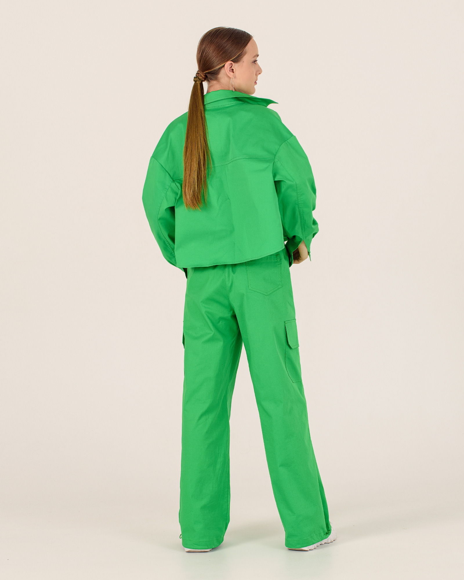 Комплект (сорочка оверсайз та брюки карго) зелений для дівчинки